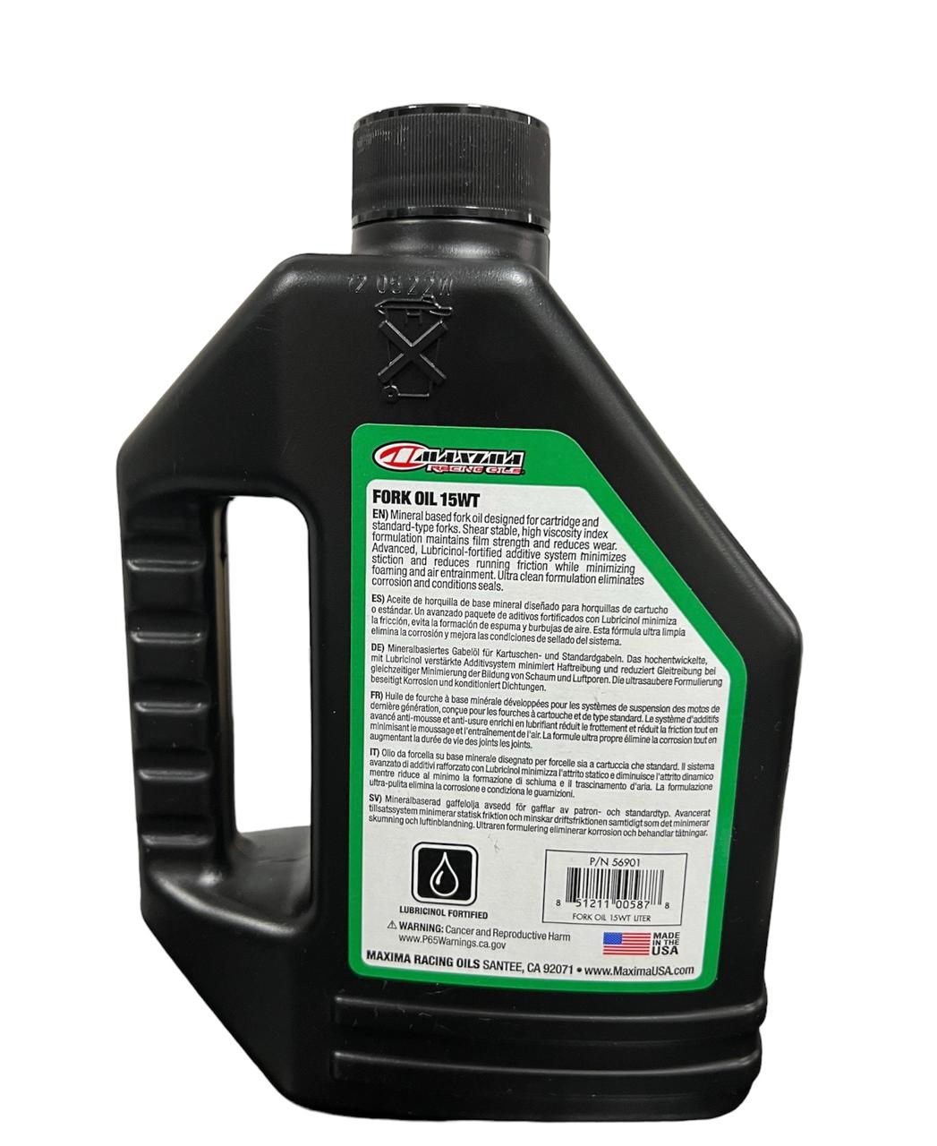 ACEITE PARA SUSPENSIONES DELANTERAS DE MOTO MINERAL 5WT MAXIMA FORK OIL Aceite mineral de horquillas diseñado para cartuchos y horquillas estándar. La formulación de alto índice de viscosidad estable al corte mantiene la resistencia de la película interna del sistema y reduce el desgaste. El avanzado sistema de aditivos fortificado con Lubricinol minimiza la fricción y reduce el roce al tiempo que minimiza la formación de espuma y la entrada de aire. La formulación ultra limpia elimina la corrosión y cuida los sellos.