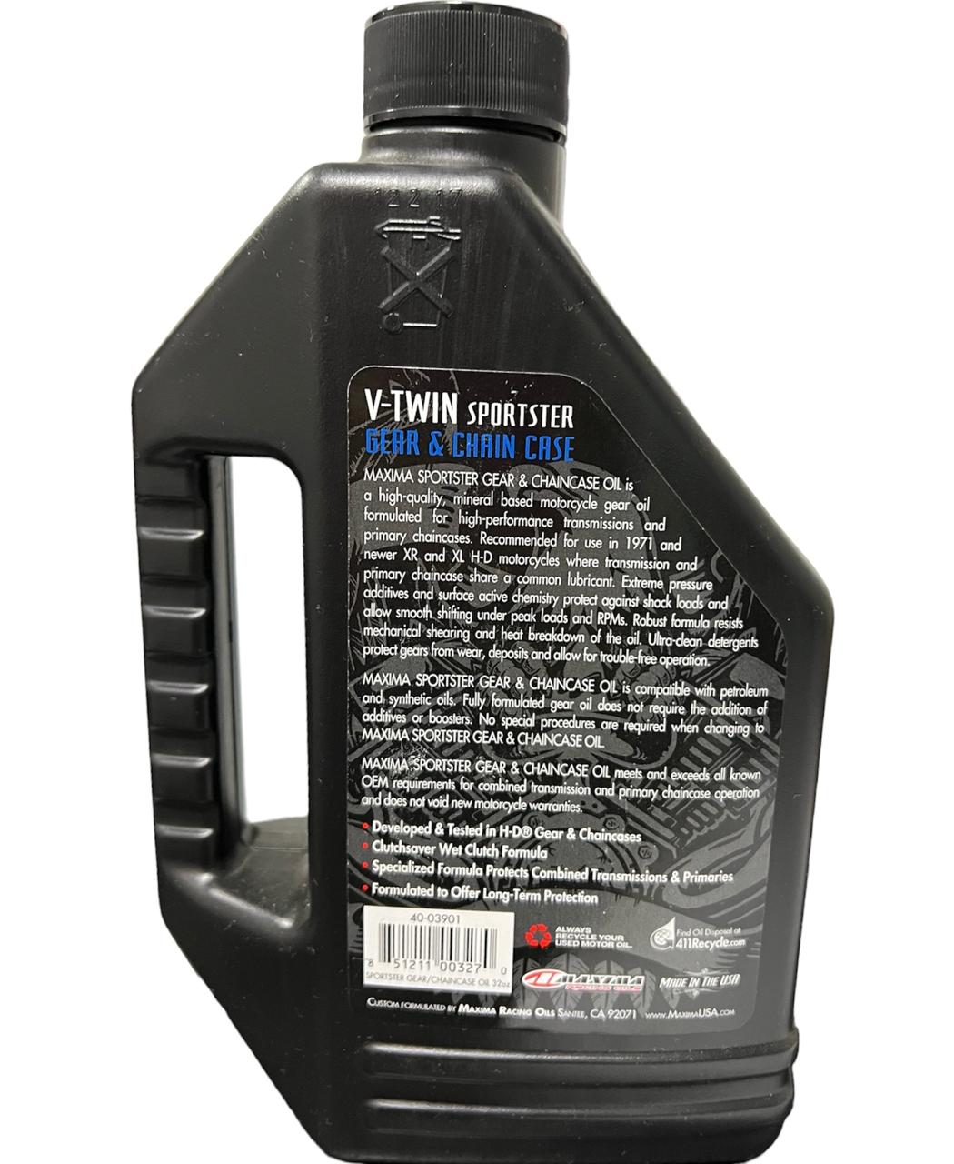 ACEITE PARA TRANSMISIONES Y CAJAS DE CADENA PRIMARIA MINERAL DE MOTOS V-TWIN MAXIMA V-TWIN SPORTSTER GEAR CHAIN CASE OIL Aceite para engranajes de motocicleta a base de minerales formulado específicamente para su uso en transmisiones V-Twin Sportster de alto rendimiento y cajas de cadenas primarias. La formulación robusta mantiene el espesor de la película y la estabilidad de la viscosidad en todas las temperaturas de funcionamiento para minimizar el desgaste de la cadena y los engranajes. La fórmula avanzada asegura un acoplamiento óptimo del embrague, facilitando cambios suaves y permitiendo la máxima potencia incluso bajo cargas extremas.